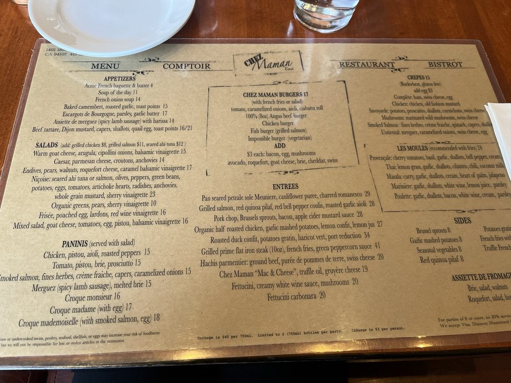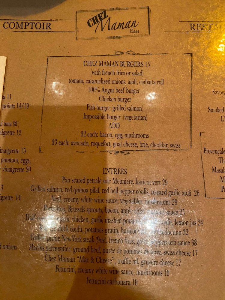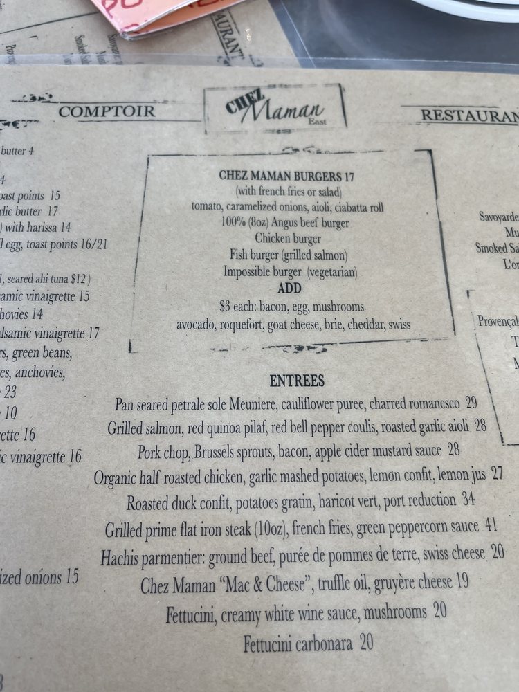 Chez Maman East Menu (2025 Update)